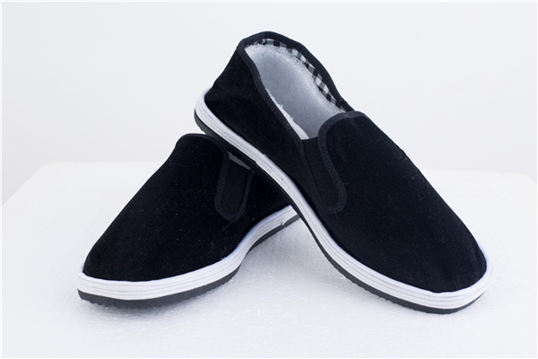 优质老北京布鞋鞋帮的滚口狭阔一致,接头放在鞋的后部不明显处,口门不起角不起空,不起皱,叉口前后一致。鞋帮缝线的针距均匀整齐,不歪斜,没有跳针,漏针以及底线翻出等现象。对于两接式鞋的接帮处,松紧口,鞋松紧布缝接处,是双线来回针缝,鞋的后跟做编结缝合,跟缝线正直。
